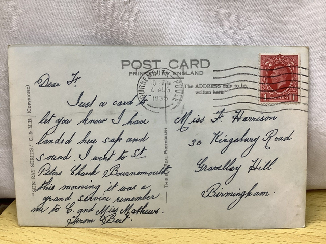 Boscombe, The Sands and Cloisters, Dorset, Posted 1935 Sun Ray Series C & M B Vintage postcard Our Ref no. R681 £2.50