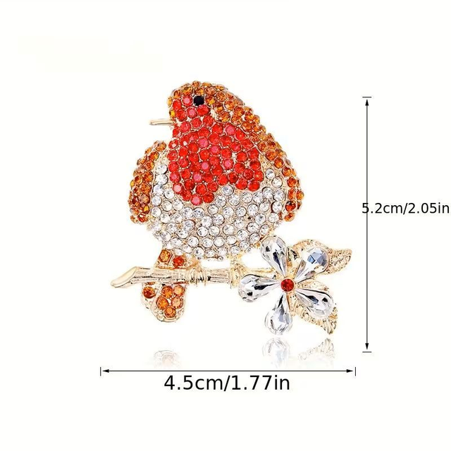 Add a touch of sparkle to your outfits with this stunning Rhinestone Robin Brooch, perfect for women who love elegant accessories. Expertly crafted with shimmering rhinestones, this charming bird-shaped lapel pin complements dresses, coats, sweaters, and more. Lightweight and versatile, it easily secures to clothing, making it an ideal corsage accent for special occasions or everyday wear. Whether worn to brighten a casual look or enhance formal attire, this brooch adds a delightful, stylish flair. Elevate your wardrobe with this timeless accessory that combines classic charm and modern sparkle, making it a must-have addition to your collection.